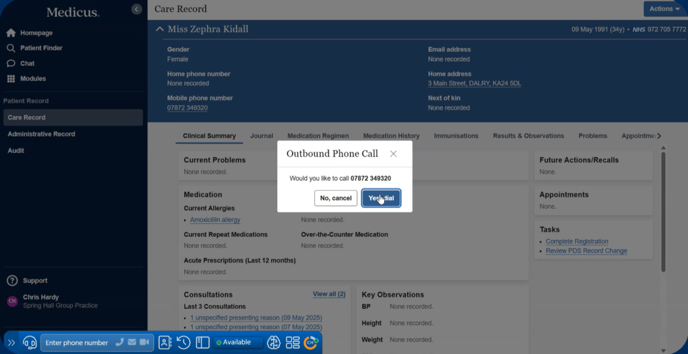 This integration brings Surgery Connect’s Phonebar tools directly into the Medicus interface. Telephony and the patient record now sit in one place, removing the need to toggle between screens or rely on bolt-ons. The result is a smoother, faster flow between patient data and communication, designed to support safer and more efficient care.